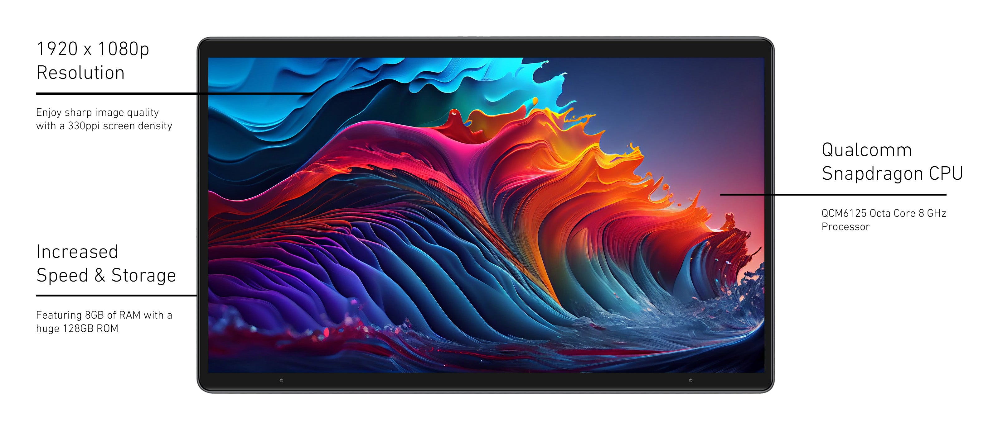 Unleash the full potential of your vehicle with our cutting-edge 13.3” Full HD Touchscreen Display. Delivering stunning 1920 x 1080 resolution with a 330ppi density, this large display transforms your dashboard into an intuitive command centre. Powered by the ultra-responsive Qualcomm M6125 8-Core processor and running on Android 12, it guarantees lightning-fast performance, seamless navigation, and effortless multitasking.
